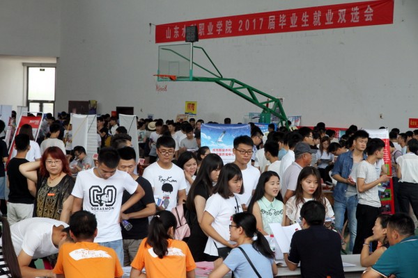 为进一步做好毕业生的就业工作,为学生搭建良好的双向选择平台,7月10日上午,我院2017届毕业生就业双选会在体育馆举行。4100余名毕业生吸引了来自省内外近300家用人单位的一万余个工作岗位,青岛海尔集团、青岛海信集团、江苏省工程勘测研究院有限责任公司、山东水务管道有限公司、山东五征集团等知名企业纷纷前来“招贤纳士”,涉及水利、建筑、机电工程、计算机、商贸、市场营销、财经等30多个行业,覆盖了学院全部专业。据统计,本次双选会共有3000余人达成就业意向。