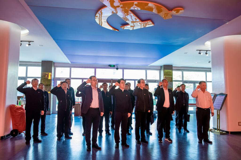 全体党员干部来到本色老党员红色群落展览馆,在讲解员的带领下,实地参观红色群落、本色之源、精神传承三个主展厅,通过历史图片、抗战文物、视频等资料,近距离了解老党员的英雄事迹。一个个故事,见证了老党员的峥嵘岁月和永葆本色的平淡生活,展现了他们“一心向党、公心为民、用心实干、清心律己、虚心传承”的本色精神,让大家深受震撼和感动。参观结束后,全体党员干部在展馆大厅重温入党誓词。