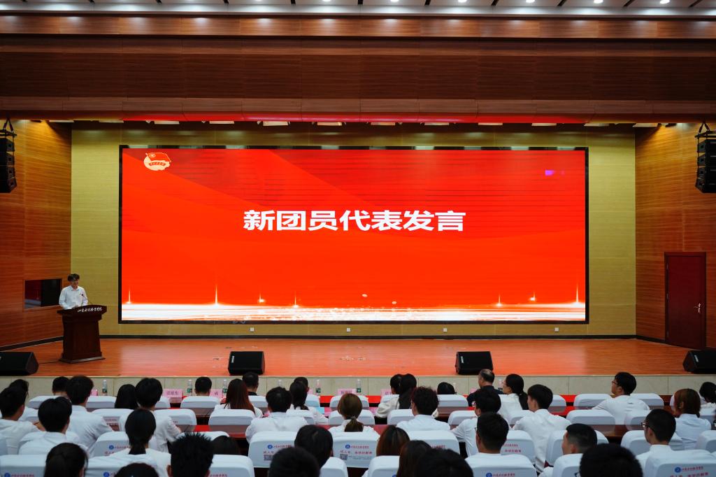 新团员代表和优秀团员代表依次发言,号召广大团员牢记习近平总书记嘱托,做理想远大、信念坚定的模范,刻苦学习、锐意创新,在新时代征程中书写更加绚丽的青春篇章,为祖国繁荣富强贡献全部智慧和力量。