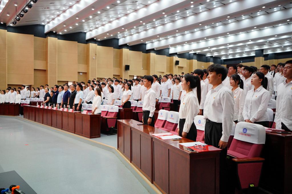 6月20日,青春为中国式现代化挺膺担当——学院2024年上半年新发展团员入团仪式在学术会议中心举行。党委委员、副院长林艳斌出席仪式并讲话,学生工作处团委相关负责人,各系部党总支书记、团总支书记,2024年上半年新发展团员和优秀团员代表等300余人参加。