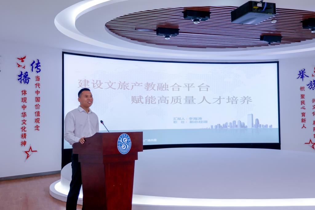 山东文旅集团数字未来发展有限公司副总经理李海涛作“建设文旅产教融合平台赋能高质量人才培养”主题产教融合经验分享。他从文旅投资、文旅科技、文旅景区、文旅酒店、文旅传媒、乡村振兴、文旅规划等方面介绍了山东文旅集团数字未来发展有限公司的发展现状,阐述了“1+3+2”人才高质量培养模式,并分享了产教融合方面的典型案例。