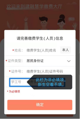 说明:编辑“缴费学生(人员)信息”时,学工号一栏可以不填。新生只需要录入姓名、身份证号即可。
