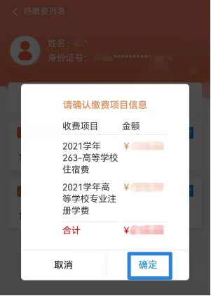 6、点击【缴费】后,再次确认缴费项目,跳转支付页面后,可选择自己常用的支付方式进行支付。