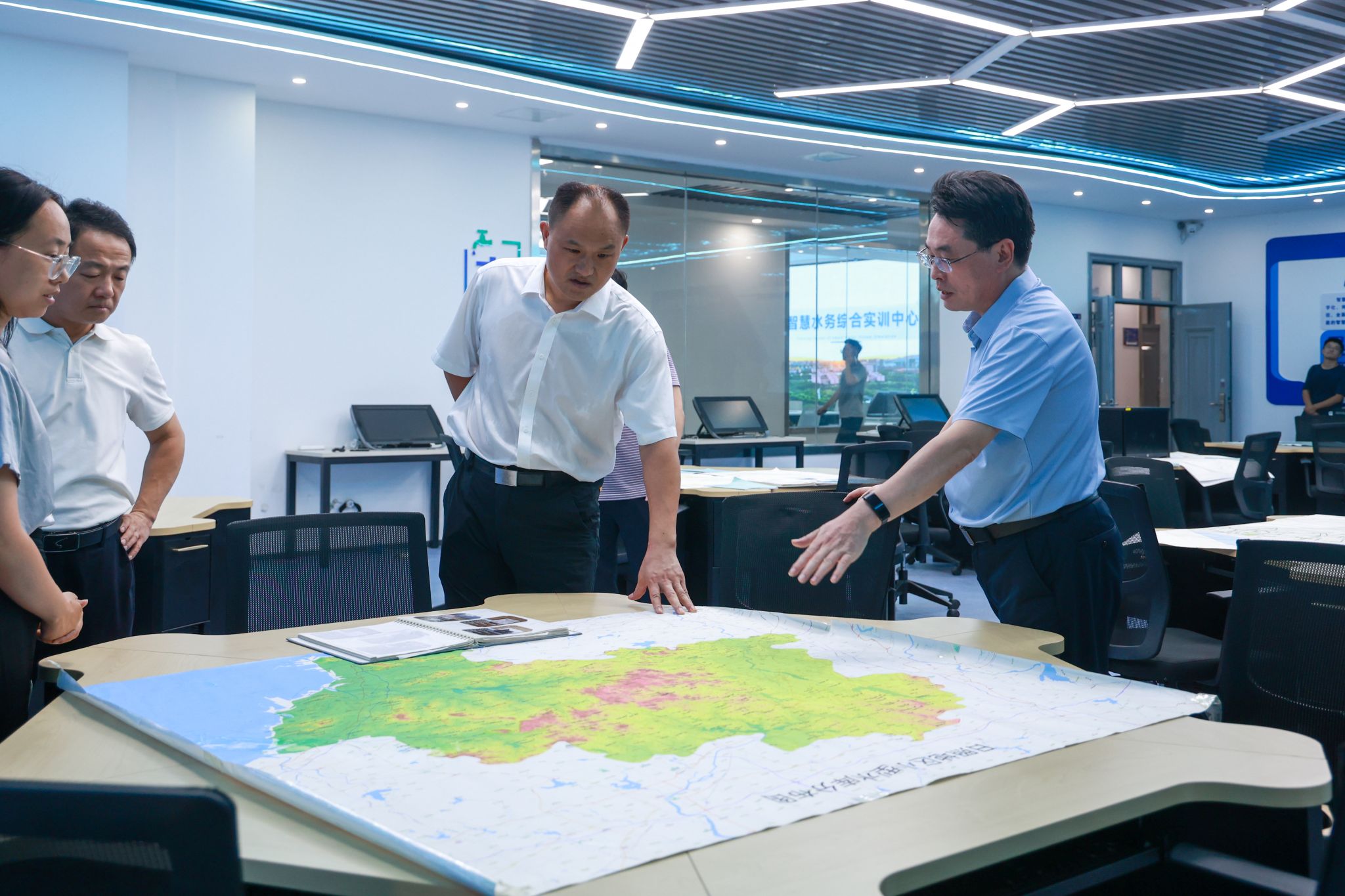 明铭实地参观了智慧水利实训中心、智慧水务虚拟仿真实训中心、现代节水灌溉实训室、数字摄影测量实训室、无人机行业应用实训室等校内实训场所,深入了解学院在数字孪生水库建设、雨水工情自动测报、智能节水灌溉、无人机测绘等前沿领域的创新成果和服务地方经济高质量发展情况。