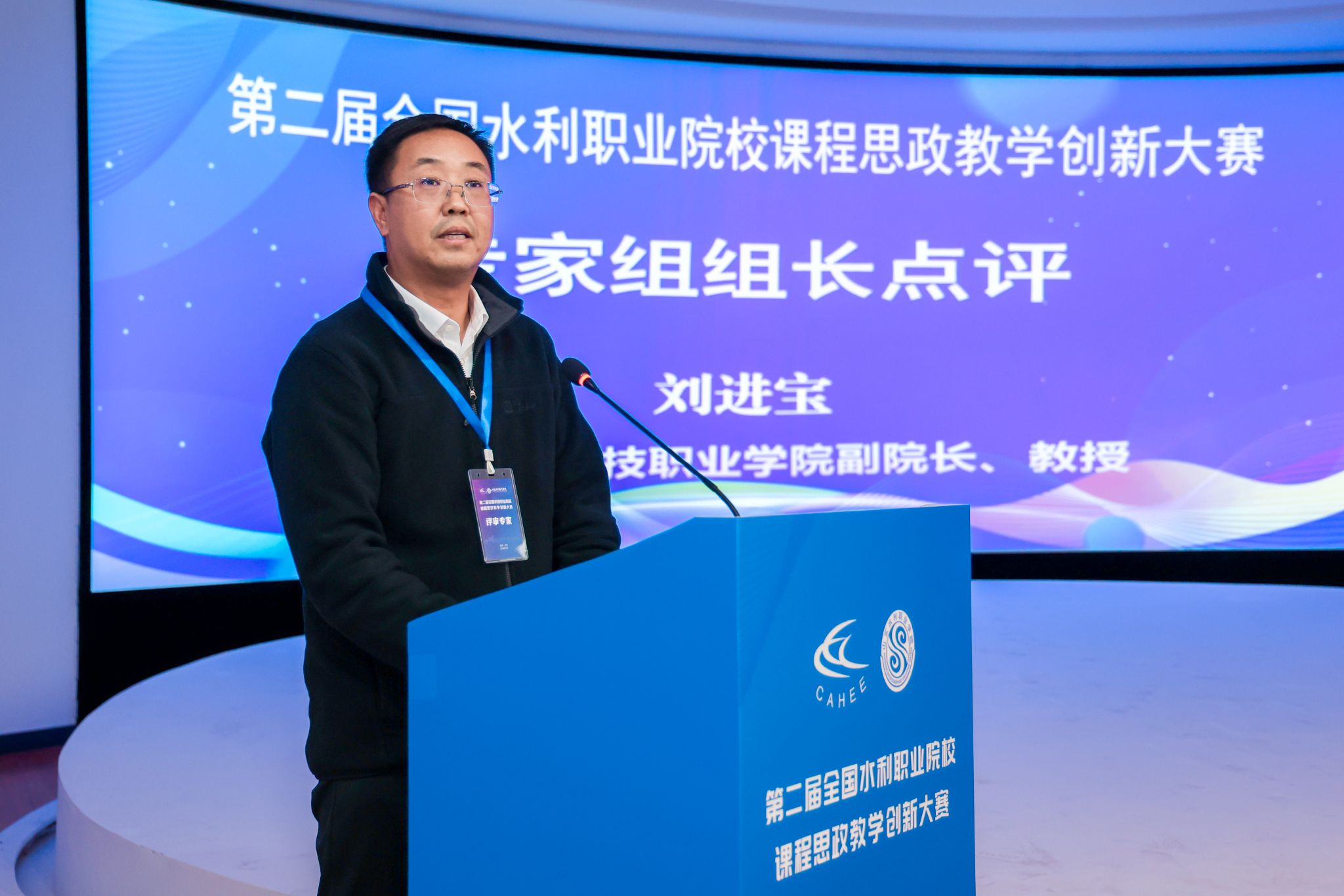刘进宝作专业点评。他高度肯定了各参赛团队在思政元素精准嵌入、情境化教学设计、产教融合案例运用及课堂表达等方面的创新实践,并就课程思政的“价值深挖”和“评价体系”等方面提出前瞻性建议。