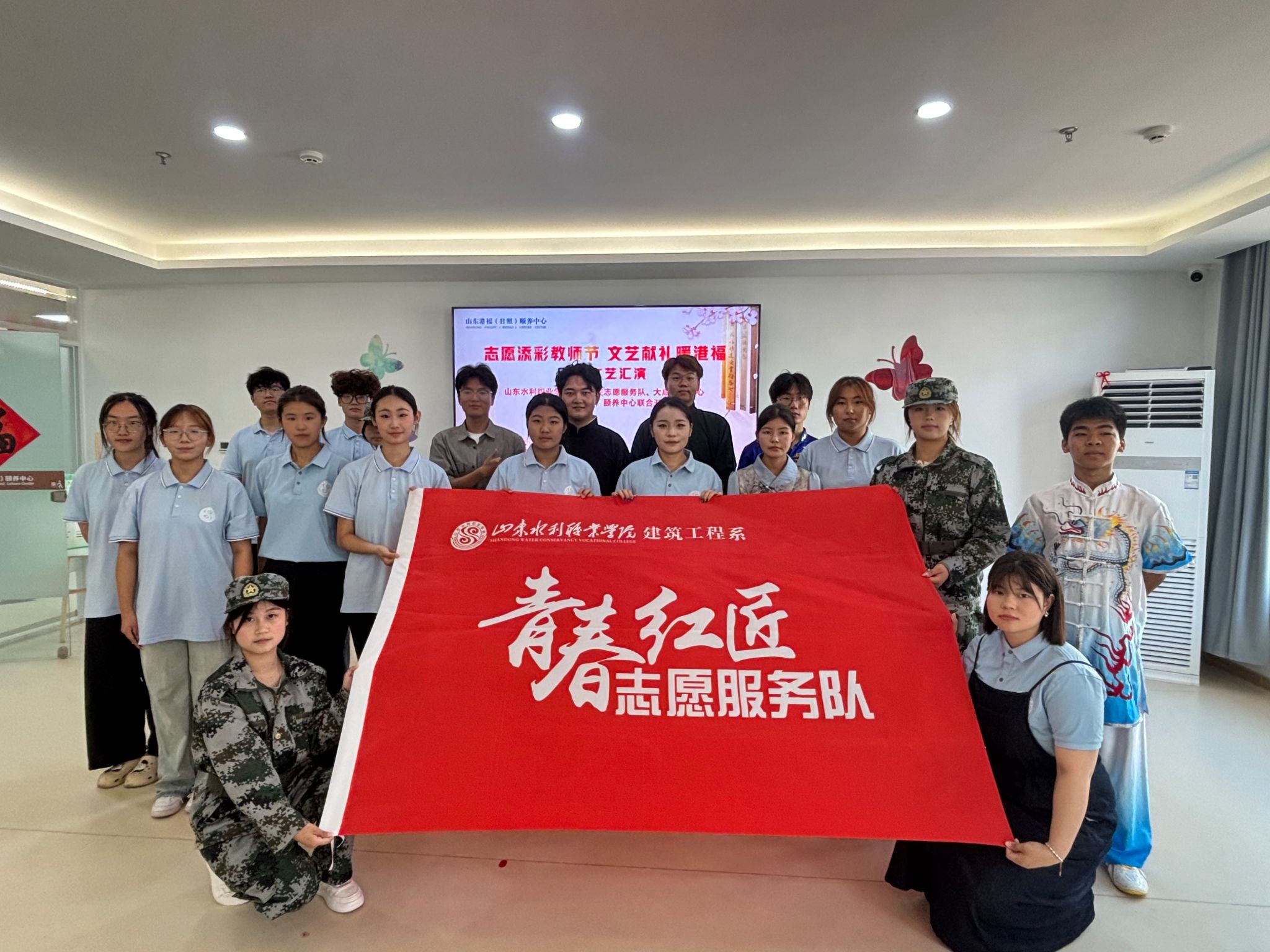 9月10日,建筑工程系“青春红匠”志愿者服务队的18名青年学子走进山东港福(颐养)中心,以“志愿添彩教师节,文艺献礼暖港福”为主题开展文艺活动,用实际行动践行尊师重道、敬老爱老的传统美德。