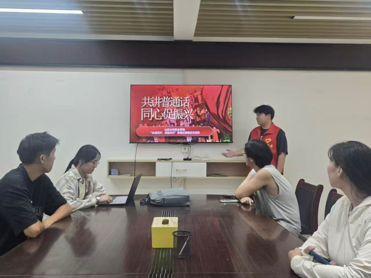 专业赋能,水语相融显特色。团队创新性地将“专业+推普”深度融合:开设“水利知识小课堂”,用普通话讲解节水灌溉、小型水利设施维护、水环境保护等实用知识,在普及水利科技的同时强化普通话应用。同时深入调研过程中,搜集方言中与水利相关的词汇表达,比如方言中对 “水渠”“水泵”等的特殊称呼,对比分析其与普通话的差异,并将这些内容融入到推普课程中。丰富推普内容,使语言推广更接地气、更具实用性,让村民们在学习普通话的同时,也能更好地理解和交流水利相关知识。