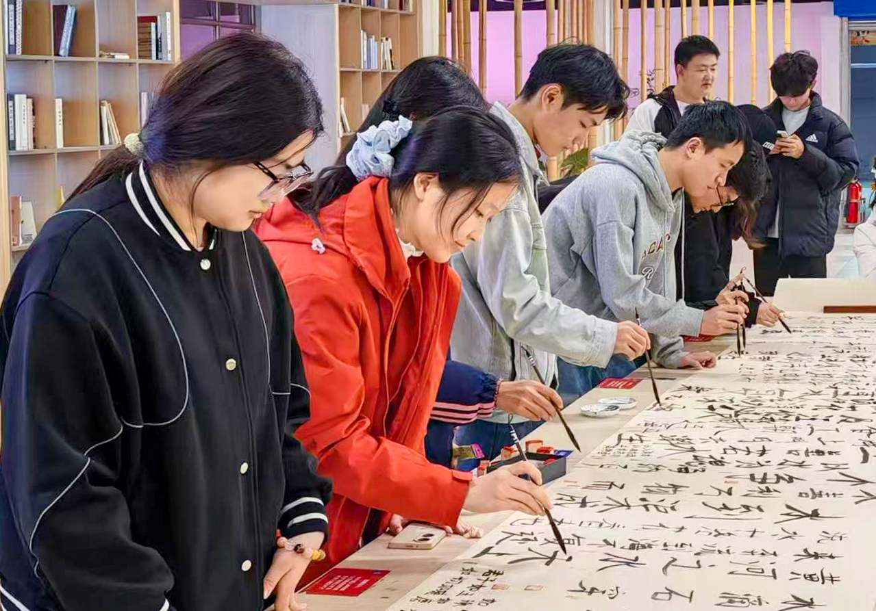 “诗意长卷”活动中,文化传承与水利情怀碰撞出别样火花。同学们以“上善若水,海纳百川”的校训为起点,开展诗词接龙活动,并将蕴含水利精神的经典诗词与彰显时代风貌的励志佳句书写于长卷。笔墨纵横间,古今文脉得以串联,生动展现了“旧词新韵”的文化生命力。