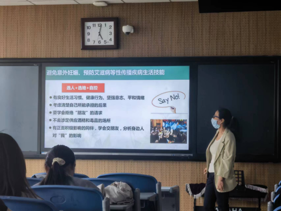 滕医生通过几个小测验引入本次讲座主题,渲染了现场轻松活跃的气氛。她通过图文结合的方式从女性的生理特点、大学生性健康教育和自我保护等方面展开讲解,主要向同学们介绍了人流的危害,避孕方式和方法,预防艾滋病等性病的技能等方面的知识。滕主任提醒女生们关注自己的身心健康,希望女生们在与异性交往时保持理性,提高自我保护意识,懂得自知、自尊、自爱、自律,做有魅力的女大学生。