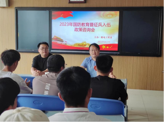 为增强学生对国防知识和征兵政策的了解,我系于6月19日邀请了学校征兵工作站张延东站长到我系开展了以“增强国防观念,争做有为青年”为主题的国防教育及征兵政策咨询会,咨询会在2218教室进行。