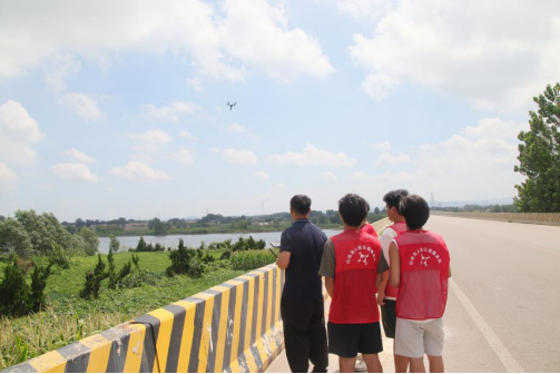培训完毕后开展暑期三下乡社会实践活动,组织志愿者们分别到街道当门村使用无人机开展河道巡查工作,到金波苑社区进行节水护河宣传,最后到锦程嘉苑社区开展科普教育活动。