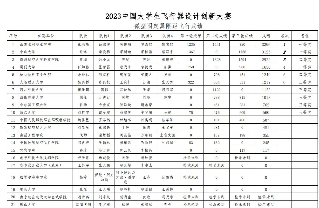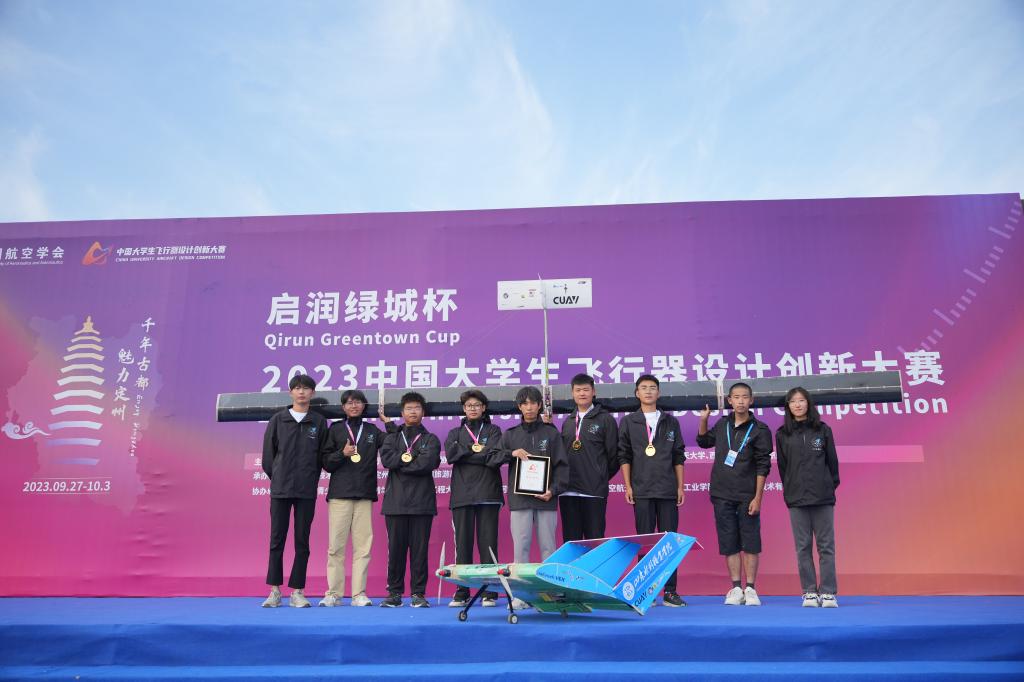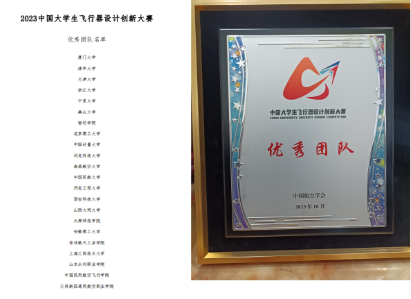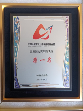 在10月3日闭幕的2023年全国大学生飞行器设计创新大赛中,我院代表队荣获“微型固定翼限距飞行”赛项全国一等奖第一名的好成绩,团队获优秀团队称号。