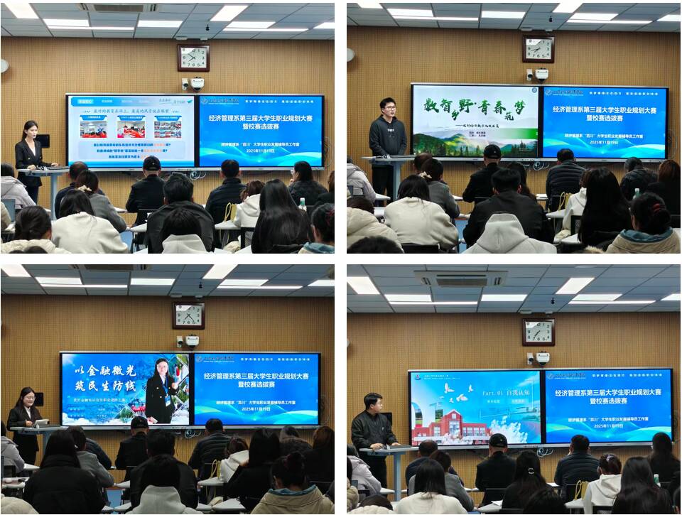 为引导学生明确职业发展方向、提升职业规划能力,近日,经济管理系举办第三届大学生职业规划大赛暨校赛选拔赛。本次大赛由系“百川”大学生职业发展辅导员工作室具体承办,经过前期动员、班级推荐和系内初评,共有15名选手晋级决赛。经济管理系相关领导老师担任评委。