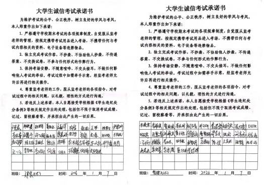 建筑工程系向全体同学发放《考试诚信守纪承诺书》,并组织集中签署,引导同学们以书面形式作出承诺,自觉遵守考试纪律,坚决杜绝各类作弊行为。同学们纷纷表示,将把诚信作为立身之本,以真实的知识水平和严谨的学习态度迎接考试,用实际行动守护个人品格与学业尊严。