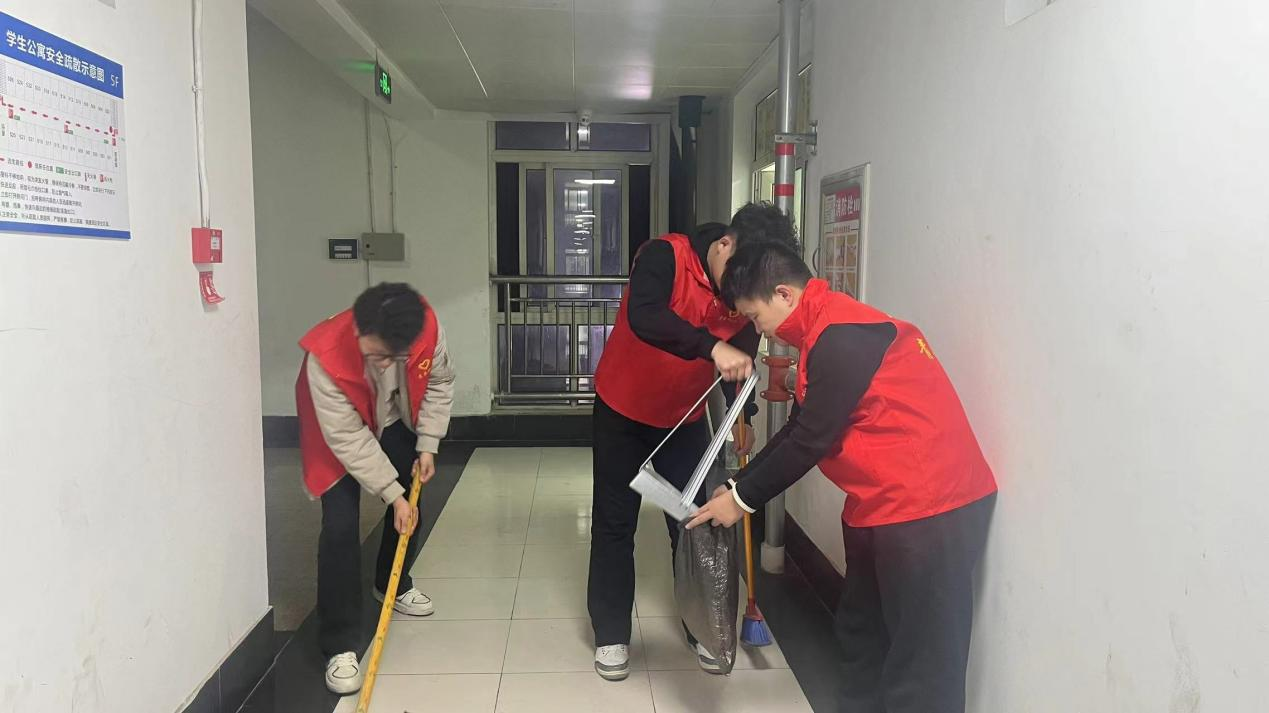 “寓”见劳动,志愿服务暖人心。志愿者们协助公寓保洁员对公寓楼内外卫生进行清洁,服务中大家充分发扬“不怕脏,不怕累”的精神,为同学们创造了一个干净舒适的住宿环境,用实际行动发扬“奉献、友爱、互助、进步”的志愿服务精神。
