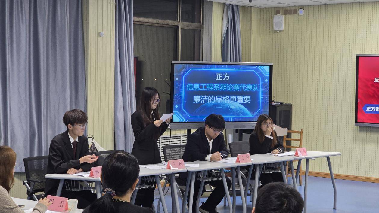 2025年12月30日,建筑工程系携手信息工程系于海晏楼4209举办“青春有为,廉动未来”主题辩论赛,两系全体学生干部到场观赛。学子们以思想碰撞诠释廉洁与能力建设的深刻内涵,用青春之声传递清正价值与能力追求。