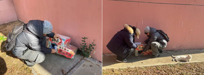 寒冬将至,气温骤降。为让校园里的流浪猫安稳过冬,近日,水利工程系组织开展“暖心守护,与喵同行”冬日救助校园流浪猫志愿活动。志愿者们通过定点投喂、搭建保暖猫窝等方式,为这些可爱的小生命撑起了一把温暖的“保护伞”。
