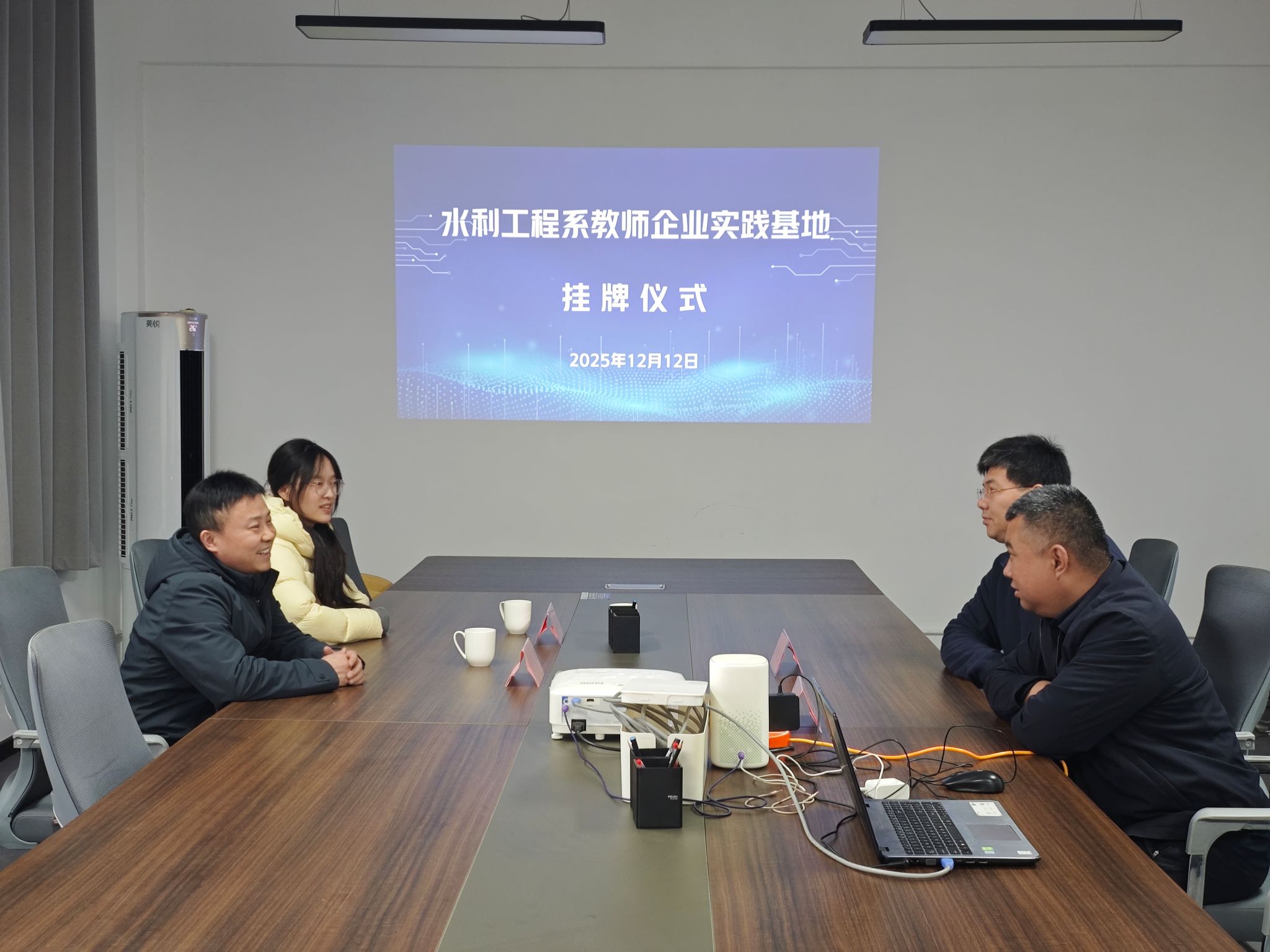 在与会人员的共同见证下,水利工程系教师企业实践基地正式揭牌。挂牌仪式后,双方围绕基地运行机制、实践内容安排、科研项目合作、学生实习实训等内容进行了深入座谈交流,并初步拟定了首批教师进企实践计划。