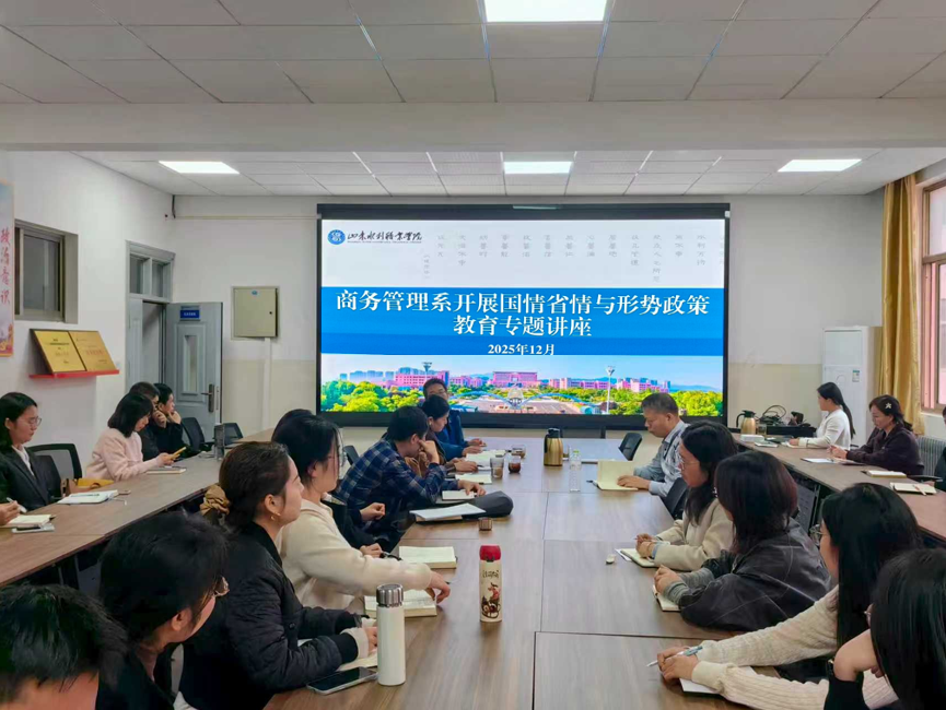 为引导师生准确把握国情省情,增强时代责任感与使命感。12月15日,商务管理系开展国情省情与形势政策教育专题讲座。讲座由系党总支副书记靳桂龙主持,全体教师及部分学生代表参加。