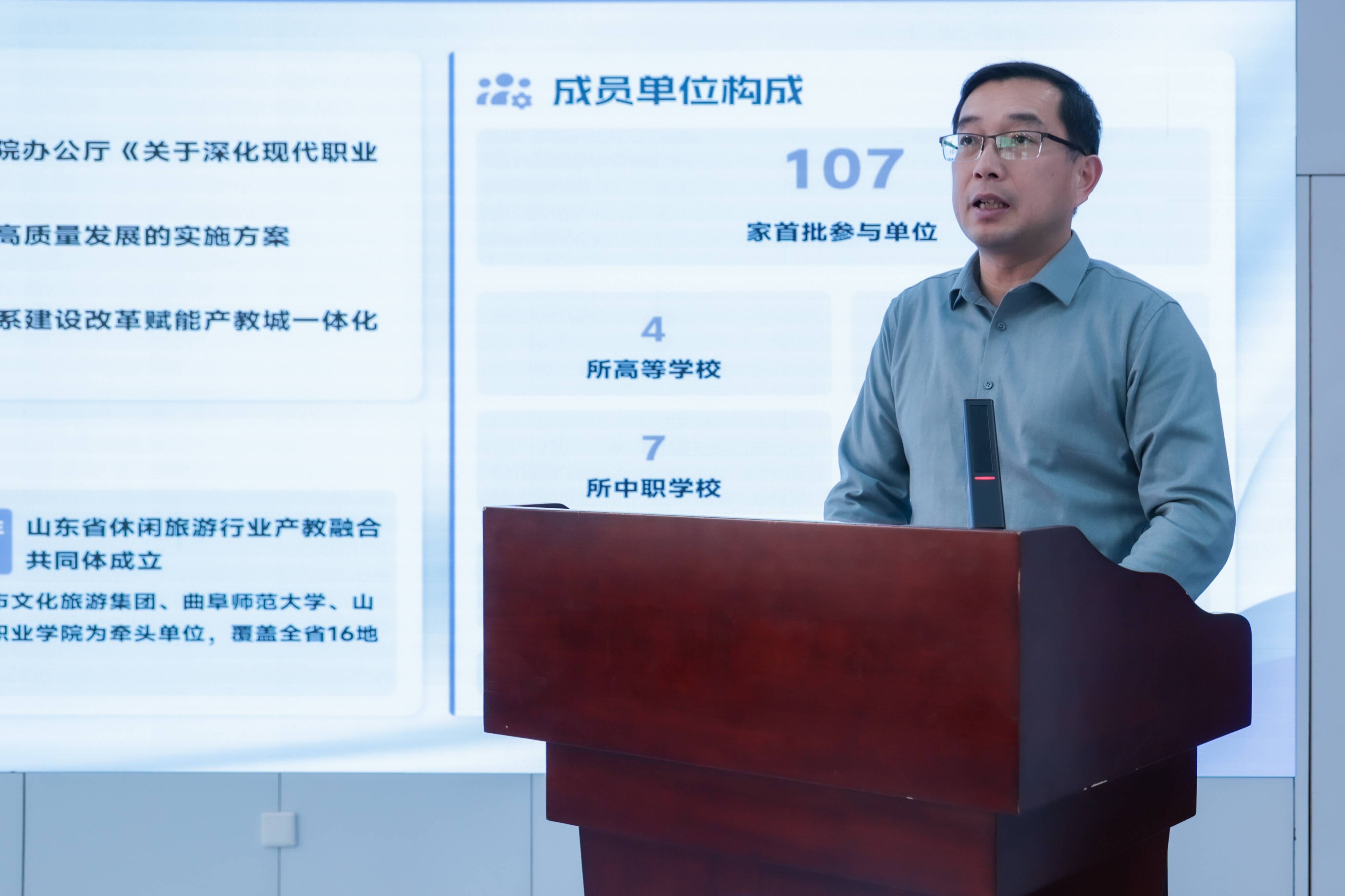 学院党委委员、副院长林艳斌在致辞中回顾了共同体成立以来在促进教育链、人才链与产业链、创新链有机衔接方面所做的探索。他强调,面对文旅产业升级的新要求,深化产教融合是必由之路,期待共同体在新的一年里进一步凝聚合力,打造更具示范性的合作典范。