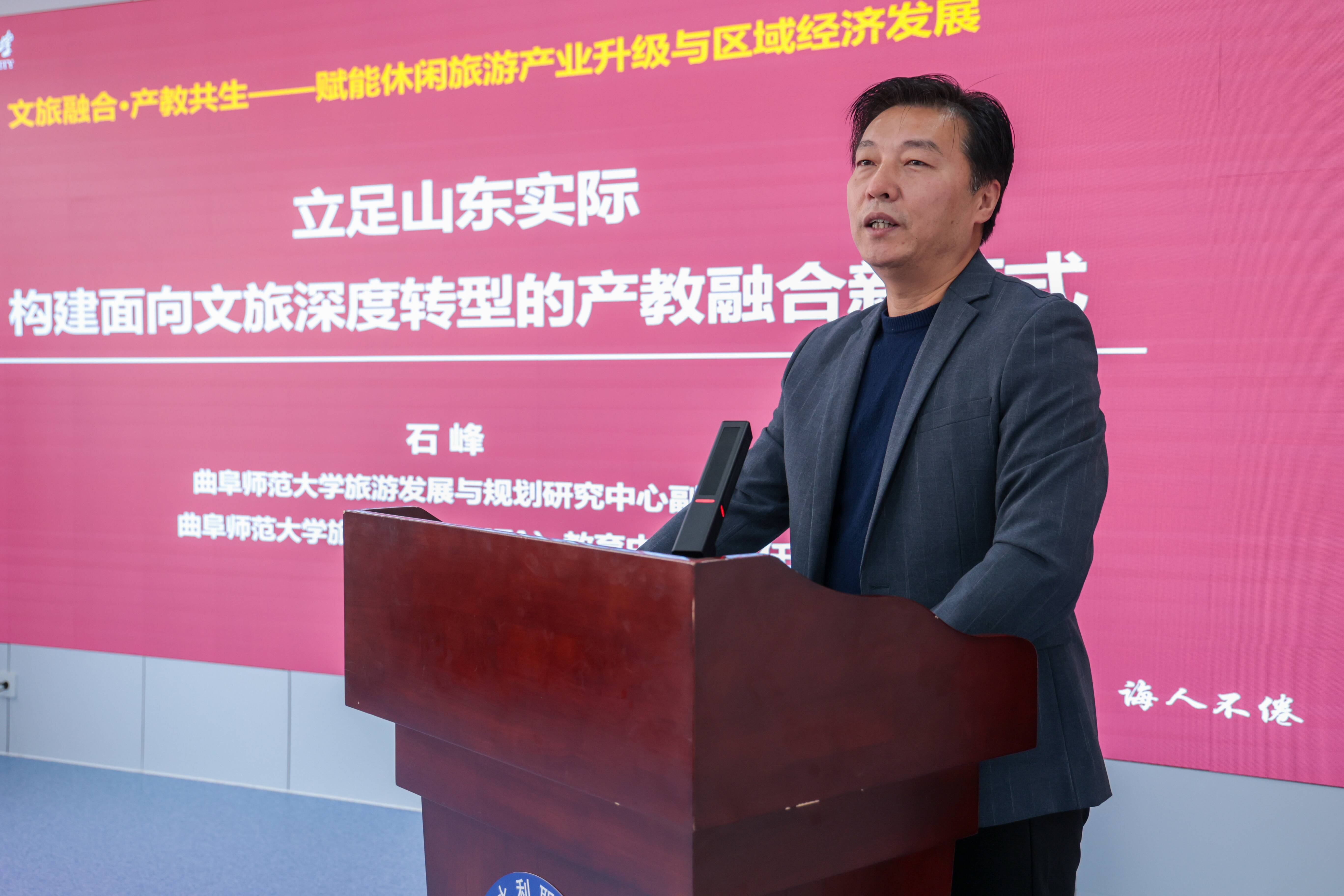 在专家讲座环节,三位嘉宾分别从产业实践、学术研究与技术应用视角作专题分享:日照文旅集团副总经理王崇杰介绍区域文旅发展实践,曲阜师范大学石峰副主任阐述农旅融合与教育赋能的协同路径,北京熙网科技总经理蔡定昌解析自媒体撬动文旅消费增长的策略与方法。