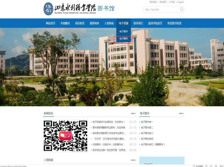 (1)登录学院图书馆网站(https://www.sdwcvc.cn/tsg/),选择“电子资源”,点击“电子期刊”,即可出现万方数据库检索界面。