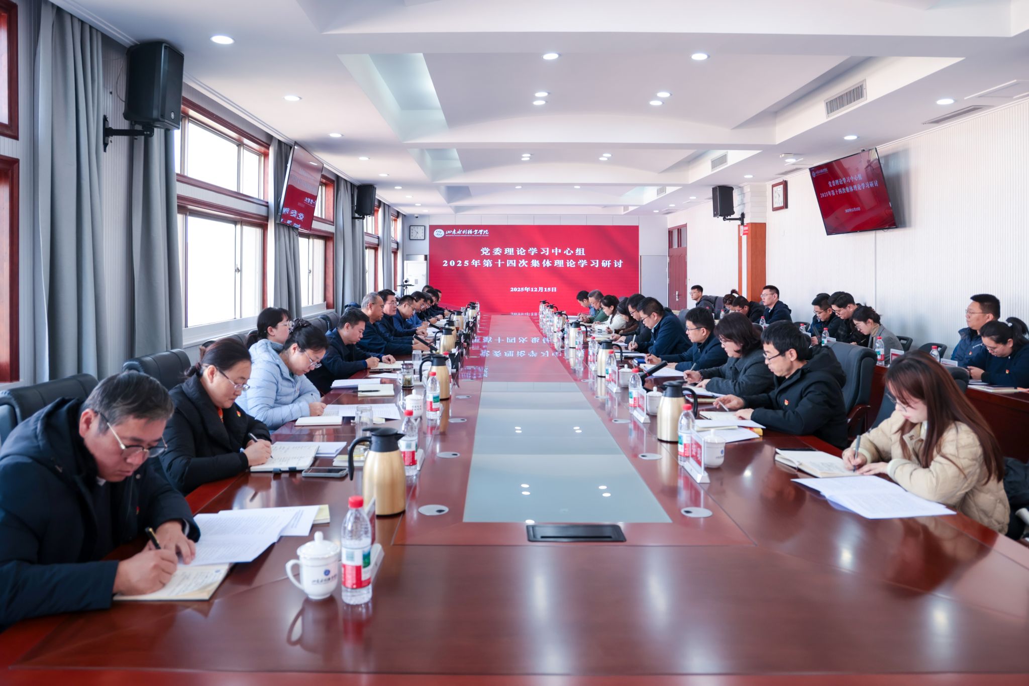 会议要求,要持续深化学习党的二十届四中全会精神,深刻领会把握党中央、省委、市委有关会议精神,将学习贯彻党的二十届四中全会精神同学习贯彻中共山东省委十二届十次全会精神、中共日照市委十四届十次全会精神相结合,精准对接国家和省、市“十五五”发展战略导向,紧密围绕黄河流域生态保护和高质量发展等国家重大发展战略,深入研判水利行业发展趋势和日照市经济社会发展需求,明确学院在“十五五”期间的发展目标和核心任务,全面擘画学院“十五五”高质量发展新蓝图。