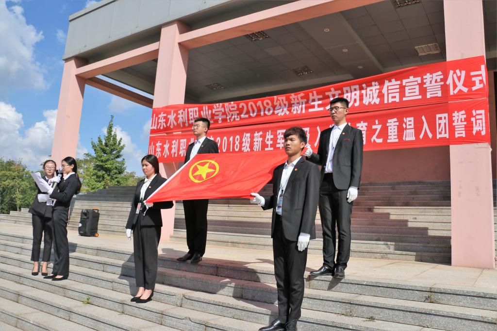 “我志愿加入中国共产主义青年团,坚决拥护中国共产党的领导,遵守党的章程……吃苦在前,享受在后,为共产主义事业而奋斗”;“我将尽最大的力量和使用所有的方法,来维持学校优良的传统……生命至上 危险OUT、守时好学 迟到OUT、健康第一 烟酒OUT……”宣誓声在广场上回荡,大家坚定的目光和铮铮的誓言展现出我校青学生子坚毅的决心和信念。
