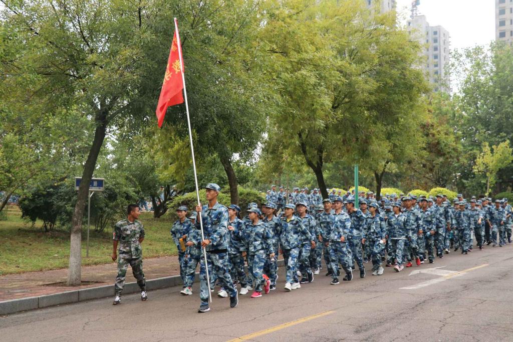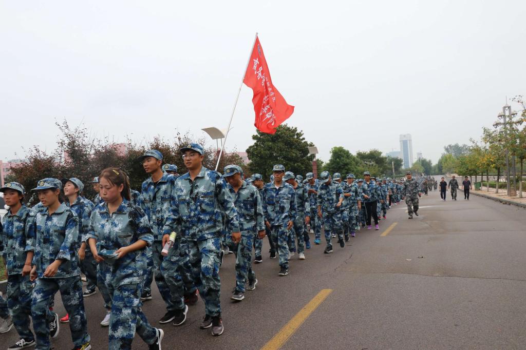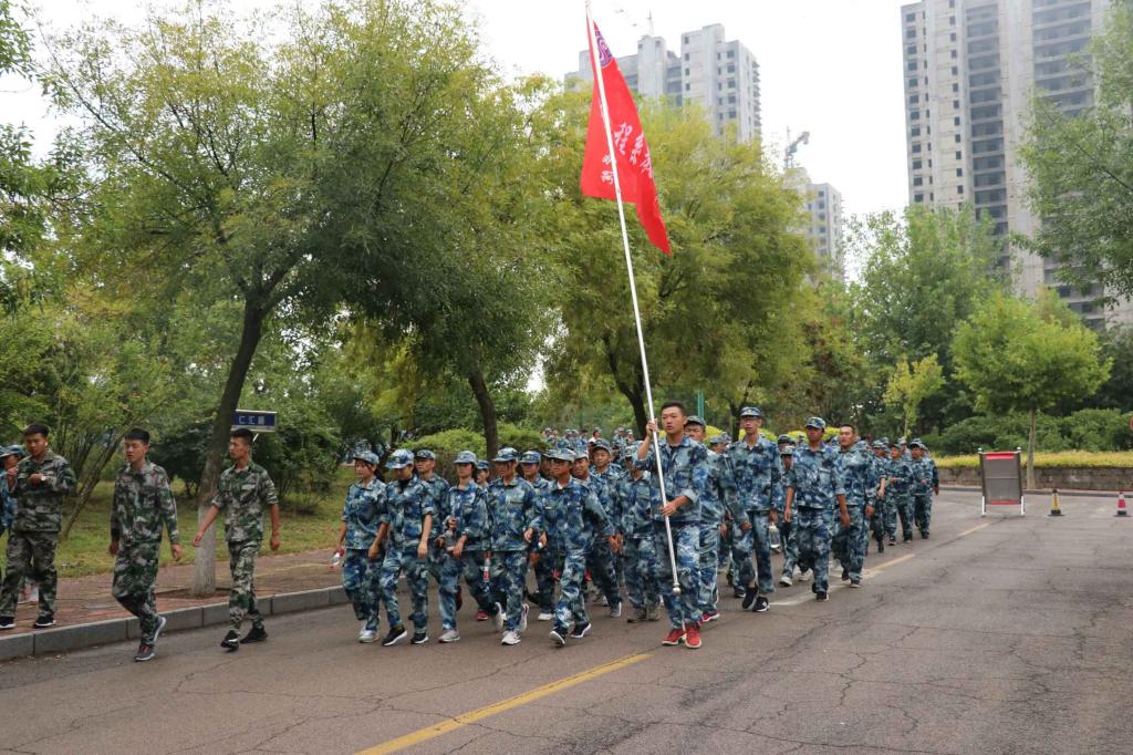 在学校党委副书记、2018级军训工作领导小组组长赵明阁同志带领下,2018级新生班主任、辅导员和全体军训教官与同学们一道,高擎各中队队旗,从学校篮球场出发,环学校外环路行进,行军路线总长近20公里,历时3小时。拉练途中,参训教官和辅导员组织大家一路高唱军歌、呼喊口号,鼓舞行进士气,并提醒学生注意安全行进,参与拉练的同学们始终保持高昂士气和饱满热情,积极投入,按照既定路线圆满完成拉练任务。为确保行军拉练安全进行,学校从安全保障、医疗服务等方面作了充分准备