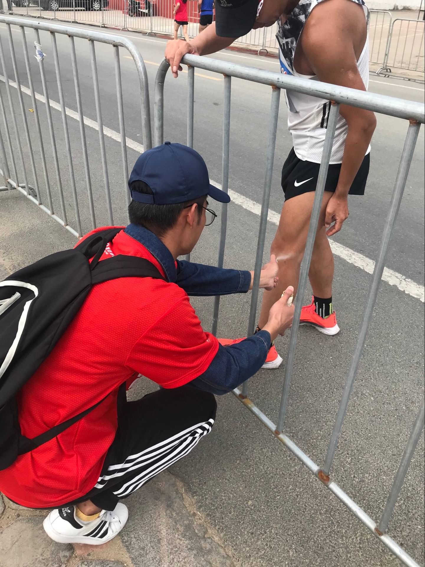 早晨4点30分,志愿者们身着工作装准时从德胜园公寓北门集合出发,分赴各个赛道补给站和医疗站。沿途随处可见一个个红色身影来回奔跑着为运动员拿衣递水,随时将丢弃的矿泉水瓶收捡起来,并不断为经过身边的跑友们加油鼓劲儿,他们用良好的形象、饱满的热情、文明的语言、高效的行动,圆满完成了会场秩序维护、物质发放、路线指引、医疗救援等各项志愿服务,受到在场观众、参赛运动员和大赛组委会的一致好评,成为赛场上一道青春靓丽的风景线。