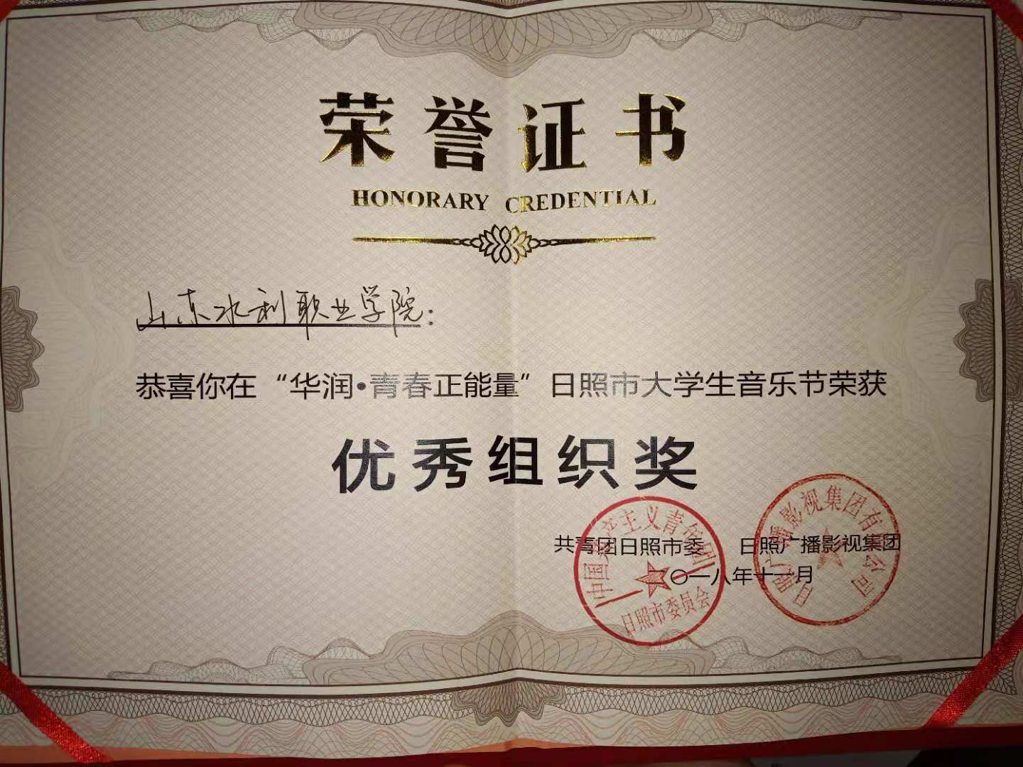 本次音乐节,我院五名选手参加比赛,经过与日照市大学城五所兄弟院校30名选手的激烈角逐,分别获得了八强和十强的优异成绩,我院获得优秀组织奖。期间,我院组织126名青年志愿者为本次音乐节进行了志愿服务。
