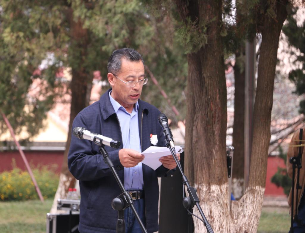 党委副书记赵明阁和师生一同参加了祭奠活动,他勉励广大师生要依循先辈足迹、传承英烈精神,始终保持艰苦奋斗、脚踏实地的作风,从自身做起,继承并发扬爱国传统,坚定自己的理想和信念,用才智和实干奋力走好新时代的长征路,为新时代社会主义事业建设贡献自己的力量。