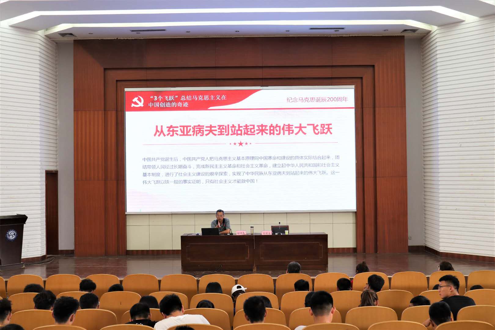 赵明阁从马克思光辉的一生、马克思主义的历史和现实意义、《共产党宣言》、深刻感悟和掌握马克思主义真理力量等六个方面展开讲解,他指出,习近平总书记在纪念马克思诞辰200周年大会上发表重要讲话,系统深刻阐述了马克思主义的伟大价值、历史传承、丰富内涵、基本观点等,生动表明习近平新时代中国特色社会主义思想与马克思主义一脉相承,是对马克思主义的创新发展,是马克思主义中国化的最新成果。讲座高屋建瓴、思想深刻、内涵丰富,引起学生干部的极大兴趣和热情。