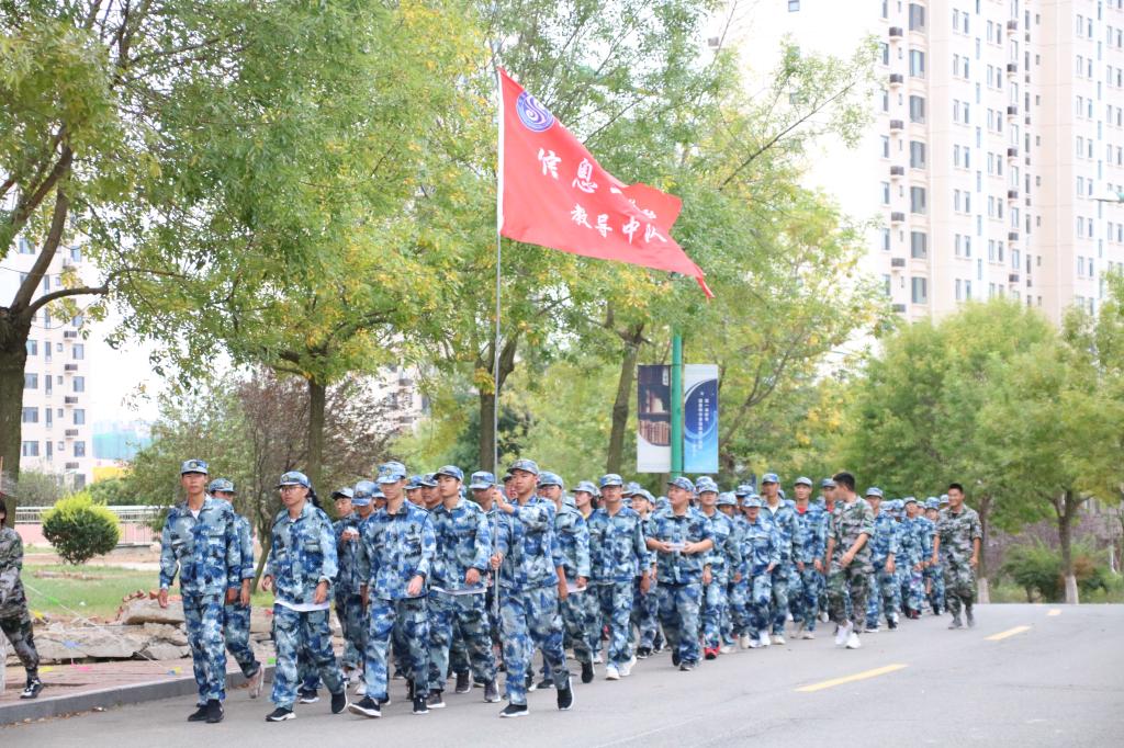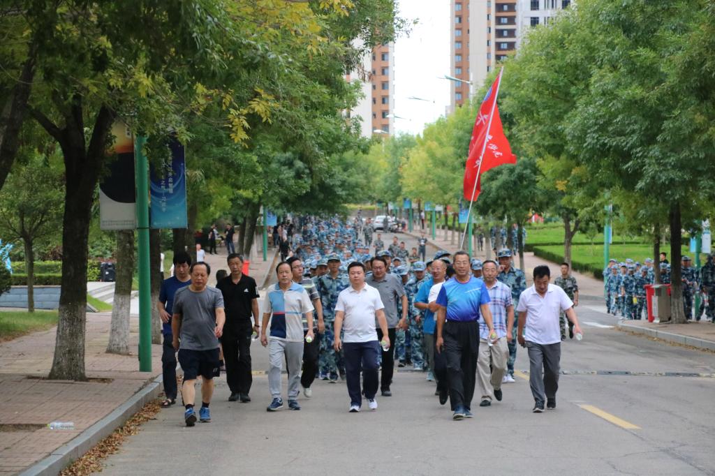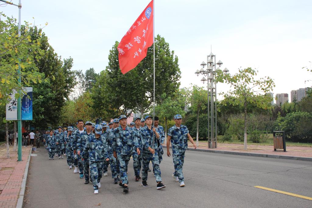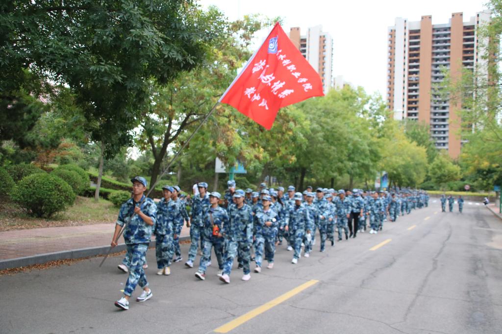在学校党委副书记、2019级军训工作领导小组组长赵明阁同志带领下,2019级新生班主任、辅导员和全体军训教官与同学们一道,高擎各中队队旗,从学校篮球场出发,沿学校外环路行进,行军路线总长近20公里,历时3小时。拉练途中,全体军训新生精神抖擞、步履矫健,参训教官和辅导员组织大家一路高唱军歌、呼喊口号,鼓舞行进士气,并提醒学生注意安全行进。同学们也始终保持高昂士气和饱满热情,积极投入,按照既定路线圆满完成拉练任务。