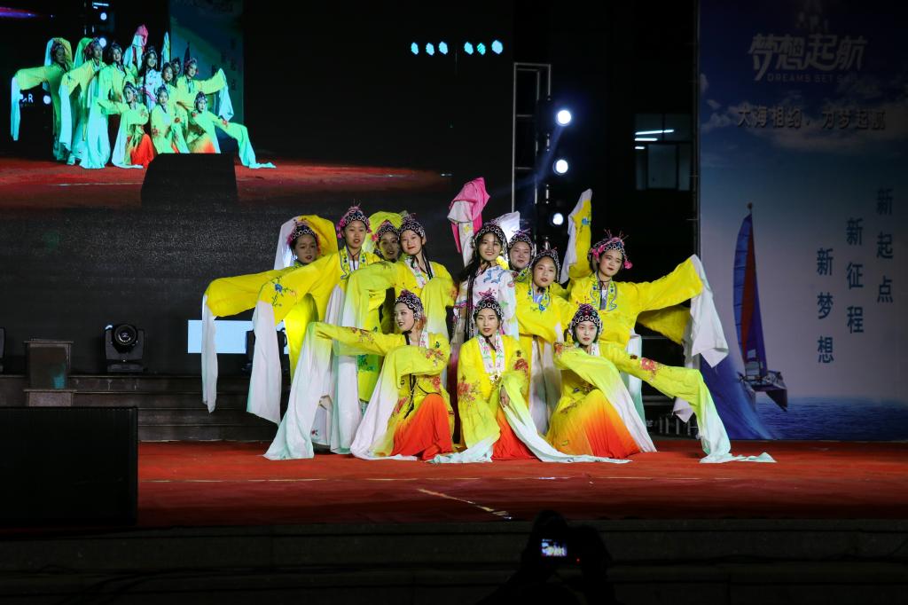 为隆重庆祝新中国成立70周年,充分展现我校深厚的大学文化底蕴和浓郁的艺术氛围,展示我校学子热爱祖国、勇于担当的精神风貌和一心向党、主动作为的昂扬激情,引导和激励广大学生积极投身于文明校园和优质校建设中来,为实现中华民族伟大复兴的中国梦不懈奋斗。9月20日晚,我校在龙韵广场举行2019年迎新文艺晚会,此次晚会以“不忘初心 逐梦前行”为主题,向祖国七十华诞献礼,表达我校全体师生的爱国情怀。学校领导、老师和2019级全体新生以及部分老生,7000多人共同观看了演出。