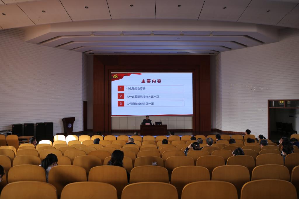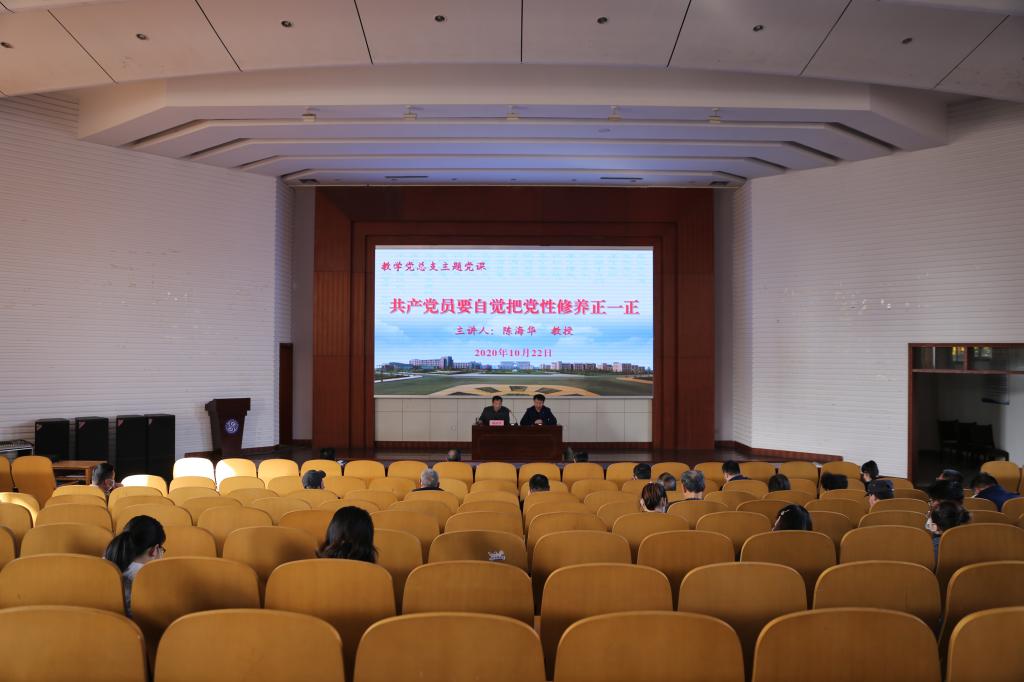 10月22日下午,教学党总支在学术报告厅开展“锤炼党性修养 筑牢党性根基”主题党课学习活动,活动邀请济宁医学院形势与政策教研室主任陈海华担任主讲,全体党员参加活动。