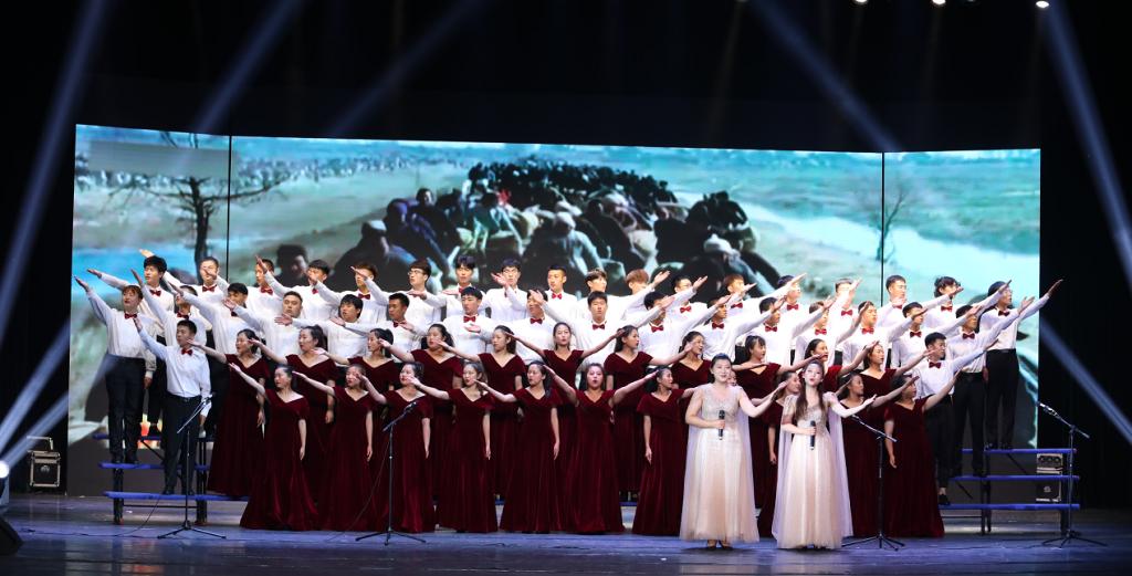 合唱团成员精神饱满、满怀激情,用昂扬向上的精神风貌抒发爱党、爱国、爱社会主义的深厚感情,表达了牢记初心使命、坚定理想信念、奋进伟大征程的豪情壮志。