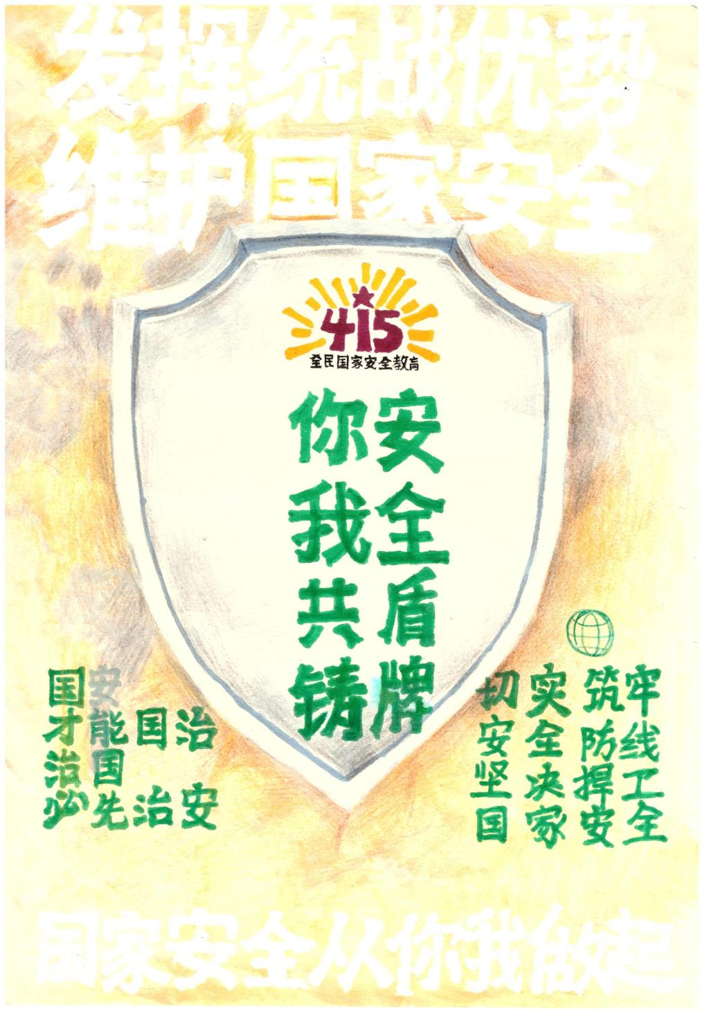 在“4·15”全民国家安全教育日来临之际,我校举办了“全民国家安全教育日”海报设计大赛,组织动员学生以个人手绘海报或电子设计图等形式参与其中,进一步增强了学生的安全防范意识和对国家安全的使命感。以下是优秀作品展示。