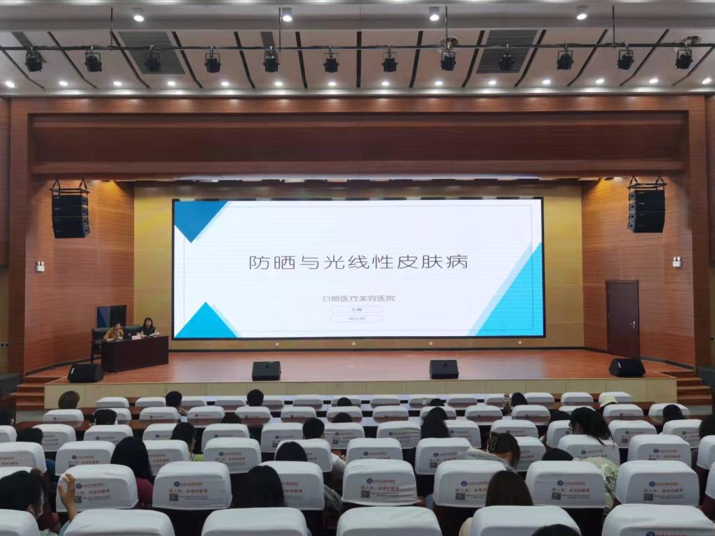 孔娟以《防晒与光线性皮肤病》为题,从皮肤性病学导论、常见的光线性皮肤病及光线性皮肤病防护的要点三个方面讲授了皮肤健康知识,为现场学生代表宣传了科学、健康、专业的护肤理念。讲座结束后,孔娟还针对咨询的学生提出针对性的护肤建议。讲座内容丰富多彩,贴近实际,为广大爱美学生解答了他们最关心的问题,现场反响热烈,与会听众纷纷表示此次讲座使他们受益匪浅。