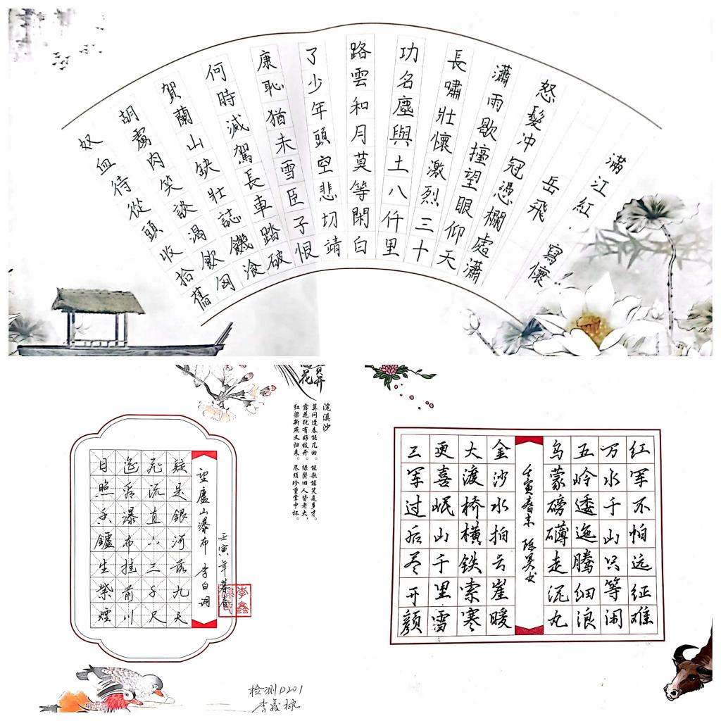 书法之美美在表,也美在骨。同学们的书写内容紧扣比赛主题,或铁画银钩,或矫若惊龙,一撇、一捺、一点、一提间都各有千秋,尽显书法艺术的魅力。