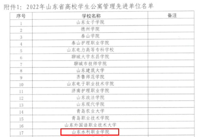 近日,山东省学校后勤协会公布了2022年全省高校学生公寓管理先进单位名单,我院成功入选。