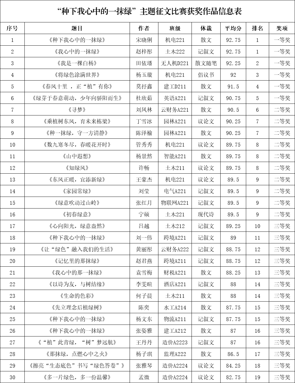 近日,我院“种下我心中的一抹绿”主题征文活动成功举办。