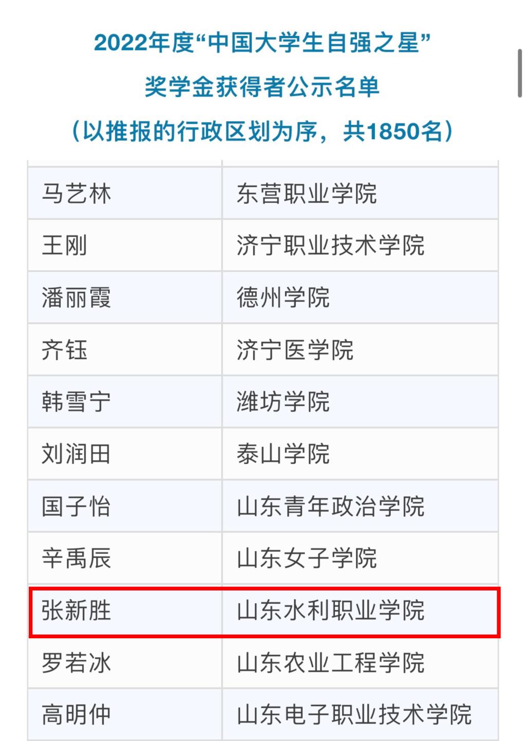 2022年度“中国大学生自强之星”奖学金推报活动由共青团中央、全国学联指导,中国青年报社、新东方教育科技集团、中国青年创业就业基金会联合举办。活动以“踔厉奋发 勇毅前行”为主题,旨在树立当代大学生中热爱祖国、品行优良、不畏艰难、自强不息的榜样,在全国范围内共表彰“中国大学生自强之星标兵”奖学金获得者10名,“中国大学生自强之星”奖学金获得者1850名。