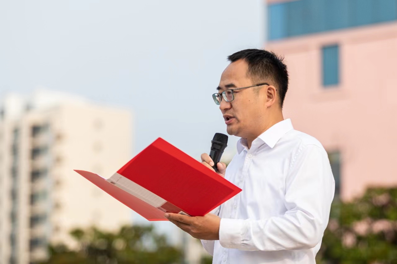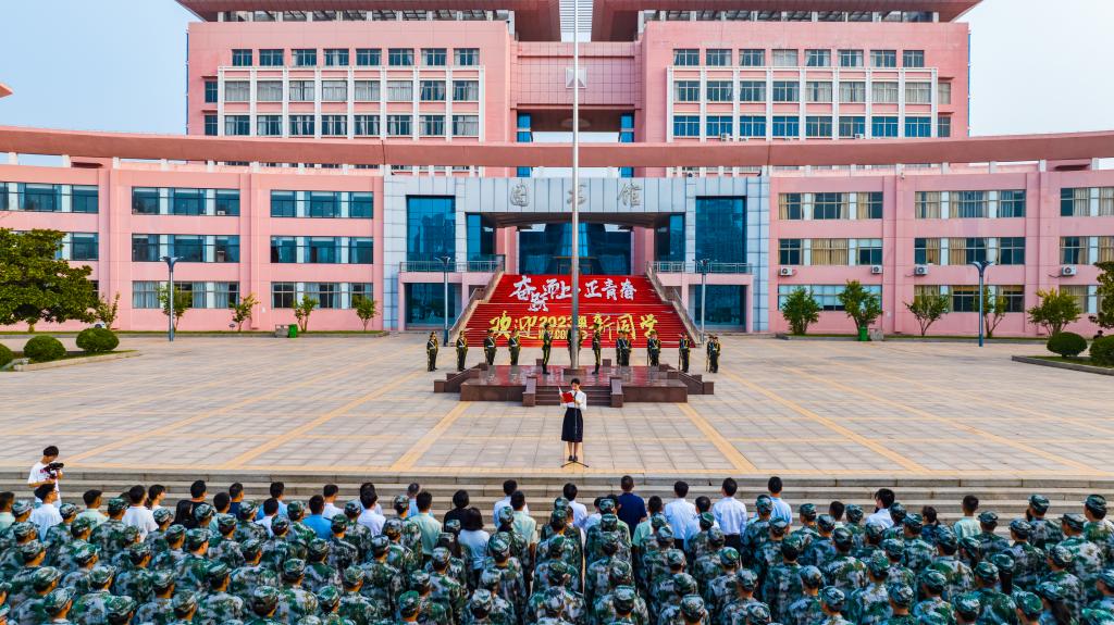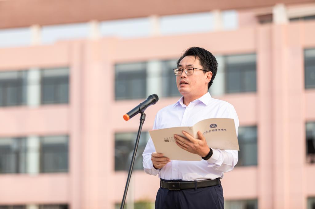 9月11日清晨,学院在龙韵广场隆重举行新学期升旗仪式。学院党委书记王维出席并讲话,学生工作处团委相关负责人,各系部党总支副书记、学工人员及2023级部分新生参加。党委委员、副院长林艳斌主持。
