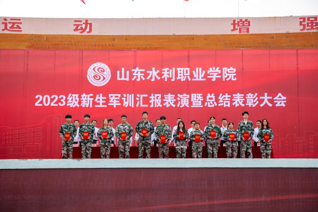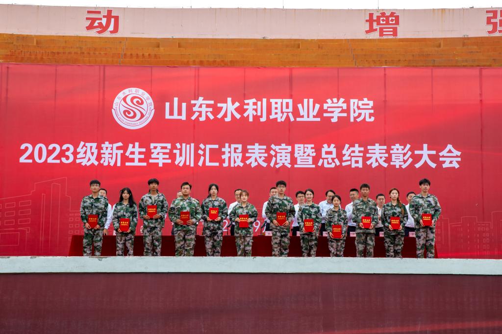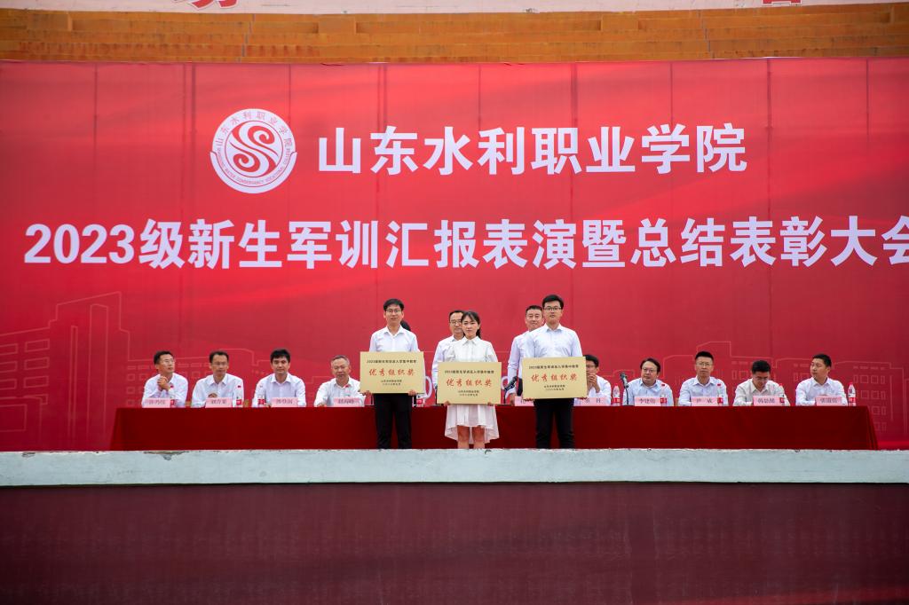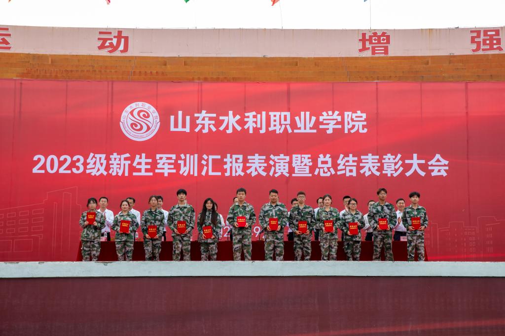 会上宣读了2023级新生军训及入学集中教育先进集体名单和优秀个人名单。机电工程系、信息工程系、资源与环境系与国际合作部三个中队分获2023级新生军训及入学集中教育优秀组织奖,评选出军训及入学集中教育先进集体55个、军训内务训练标兵宿舍307个、优秀教官61名、军训标兵424人。与会领导为获表彰的集体和个人代表颁奖。