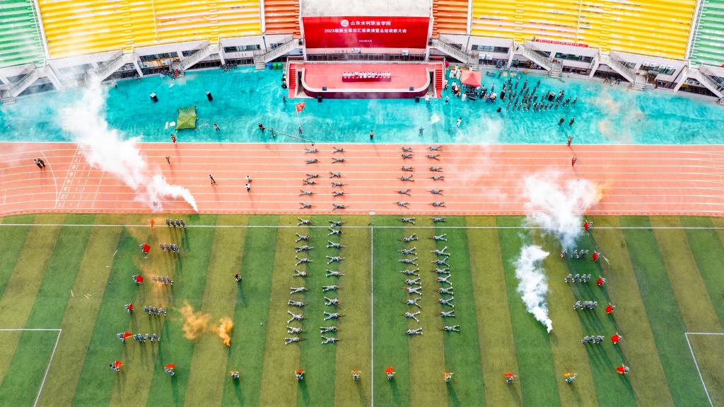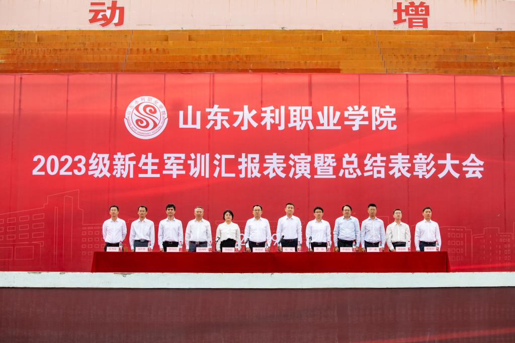 9月23日下午,我院2023级新生军训汇报表演暨总结表彰大会在田径场顺利举行。学院党委委员、副院长林艳斌出席并讲话,学生工作处有关领导、各系部党总支副书记、全体学工人员、2023级全体参训学生参加。大会由学生工作处处长孔彪主持。