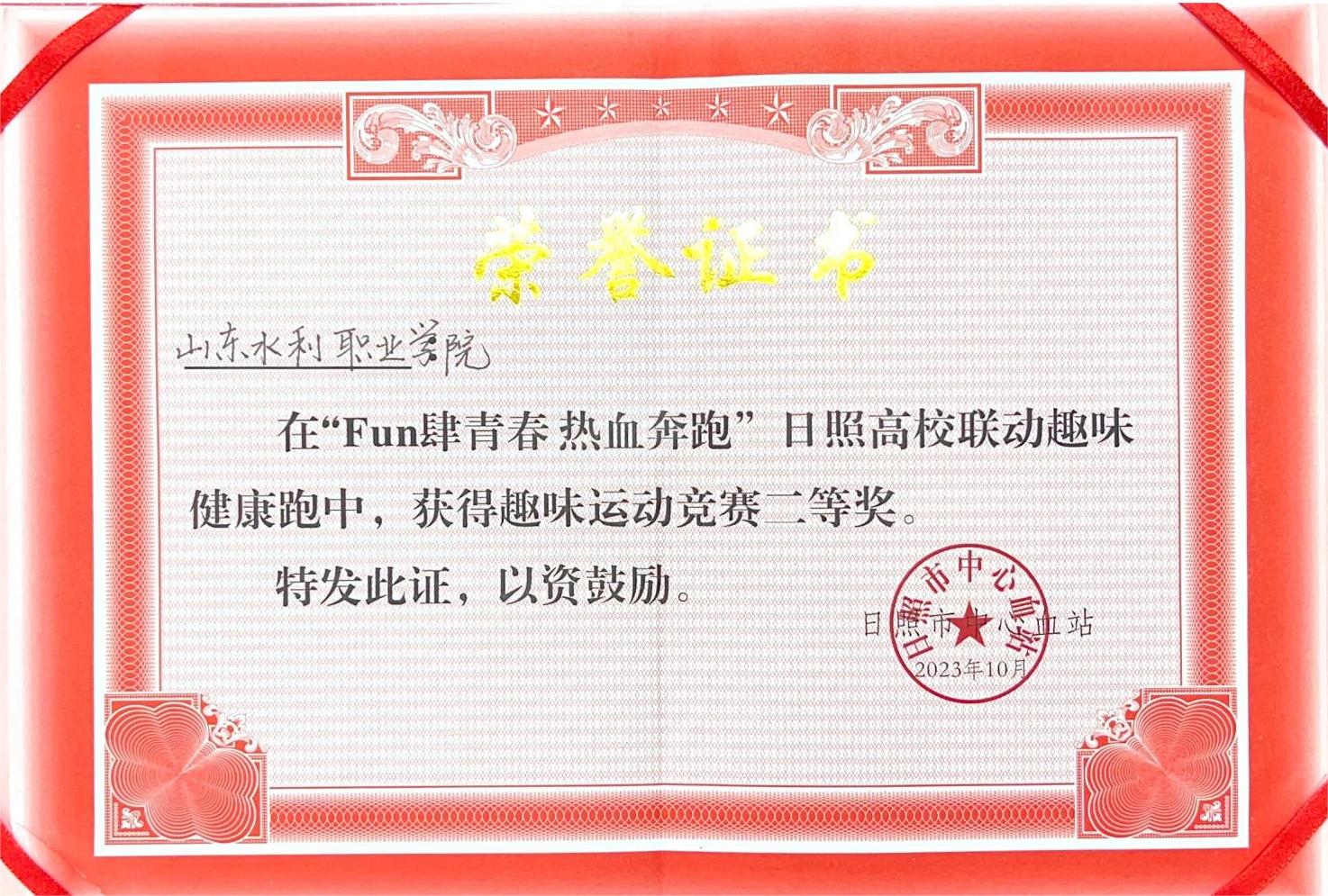 10月15日,“Fun肆青春 热血奔跑”日照高校联动趣味健康跑活动在日照职业技术学院操场拉开帷幕。来自7所院校的500余名高校学生参与了活动。本次活动由日照市卫生健康委员会、日照市人力资源和社会保障局、日照市教育局等六个单位和各驻日照高校承办。我院代表队在7支队伍的激烈角逐中脱颖而出,以团体总分第二的成绩荣获竞赛二等奖。