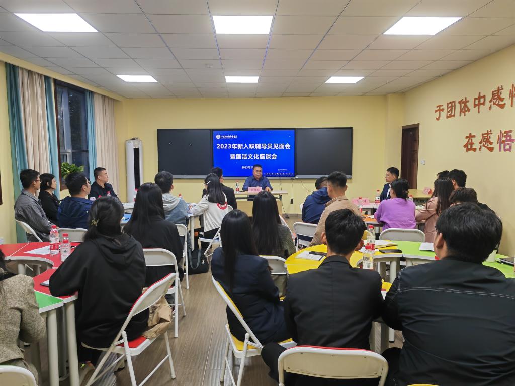 10月20日下午,学院举行2023年新入职辅导员见面会暨廉洁文化座谈会。学院党委委员、纪委书记贾维忠出席,学生工作处相关负责人、全体新入职辅导员参加。会议由学生工作处处长孔彪主持。