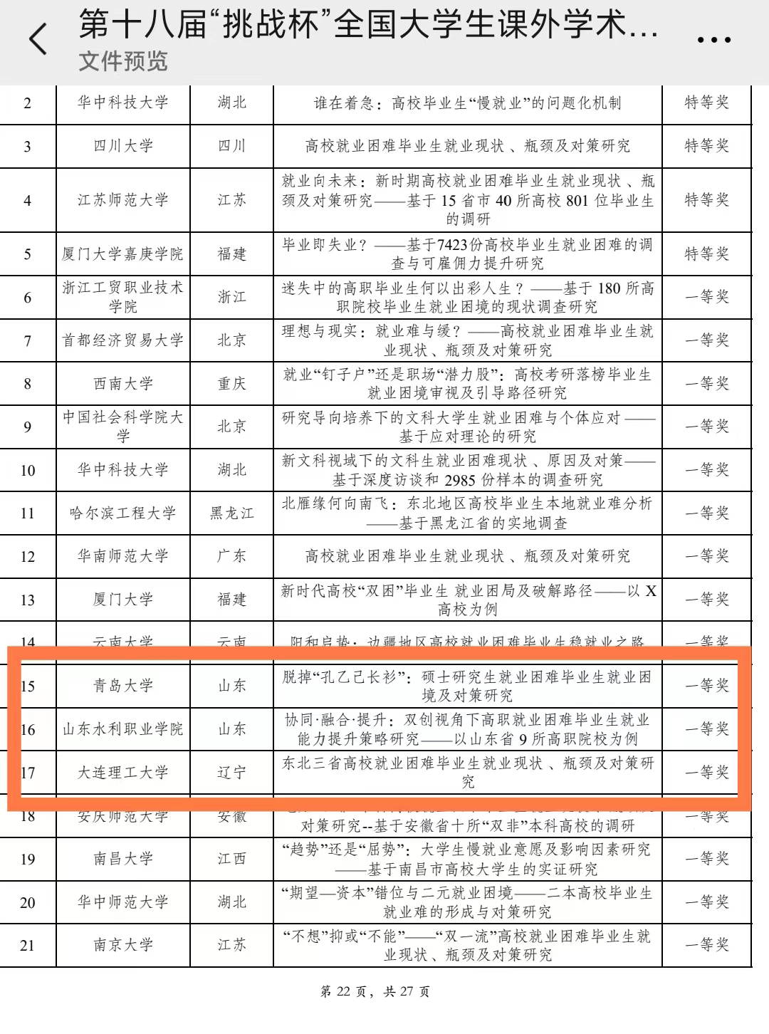 近年来,学院高度重视“挑战杯”系列竞赛,紧密围绕“双高”建设和人才培养目标,积极搭建系赛、校赛多层级选拔平台,通过团队搭建、导师配备、项目申报、资金扶持等一系列举措,扎实培育重点项目;通过开展线上线下双线备赛及各类专题培训和跟踪辅导,加强对项目的跟踪培育、孵化,全方位保障和提升参赛团队的作品水平。历经系赛、院赛、省赛和国赛的层层选拔,最终《本地脱网化手机快速取证技术的应用》项目获主赛道三等奖,《协同·融合·提升:双创视角下高职就业困难毕业生就业能力提升策略研究》项目获“揭榜挂帅”专项赛一等奖。