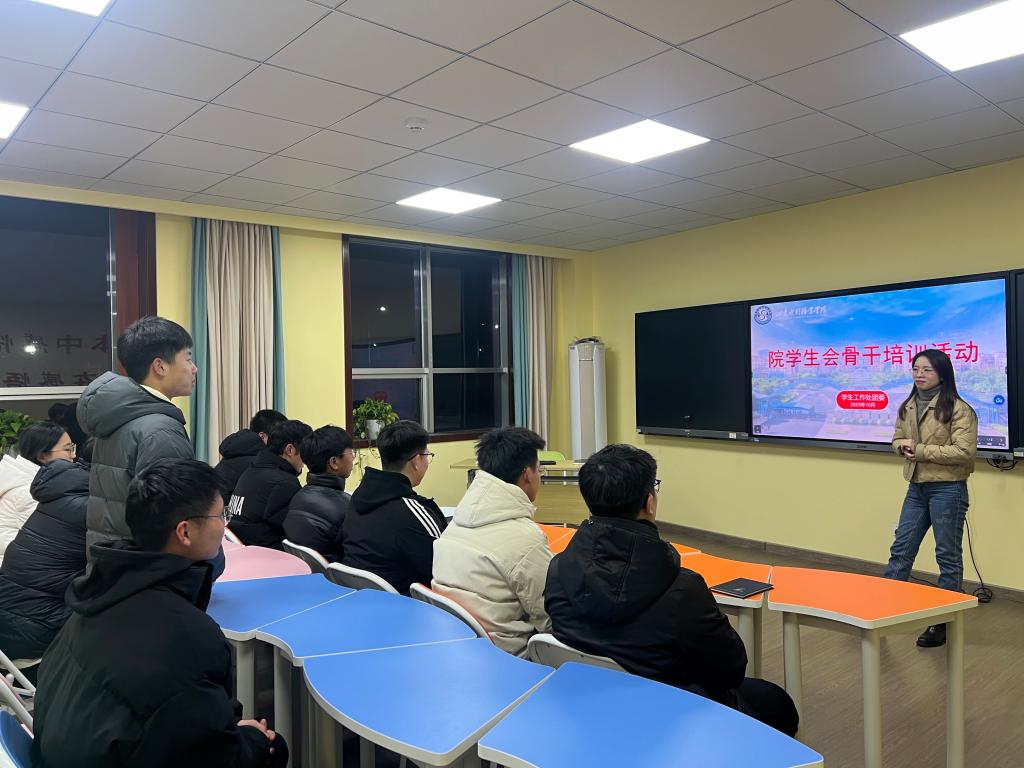 为增强院学生会骨干的责任意识,进一步加强其组织协调能力,更好地发挥学生骨干在学生自主管理中的作用,10月12日,在体育馆S205开展学生会骨干培训活动,团委书记张琪、学生工作处相关老师及全体学生会骨干参加。